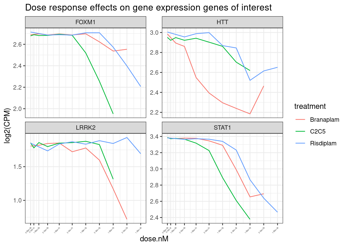 filter(gene_names %in% c("FOXM1", "LRRK2", "HTT", "STAT1"))